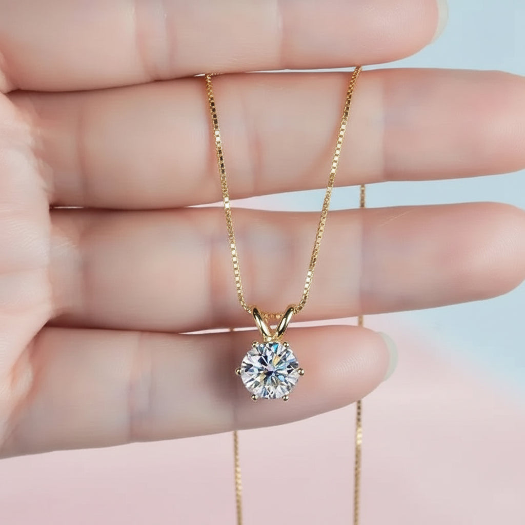 Odkryj wyjątkowy blask naszyjnika z moissanitem i srebrem próby 925. Każdy egzemplarz posiada certyfikowaną moissanitę (VVS1, kolor D), która zapewnia blask jak diament oraz wysoką trwałość.